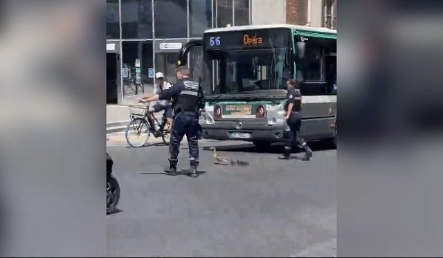 A video is winning hearts on the internet, showing two police officers stopping traffic in Paris to help a mother duck and her ducklings cross a busy road.