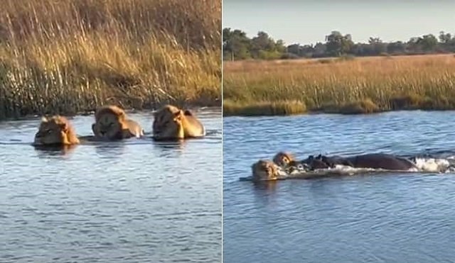 In a weird post, three lions attempted to cross a river at the Selinda Reserve spillway in Botswana when they were intercepted by an angry hippo. The Great Plains Conservation shared the video of the incident on YouTube and called it an “unforgettable moment”.
