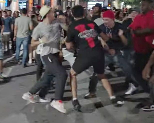 The scene was filmed by passersby on the 6th Street in the city of Austin, Texas on July 3 and later shared onto a YouTube account TX Street Fights.