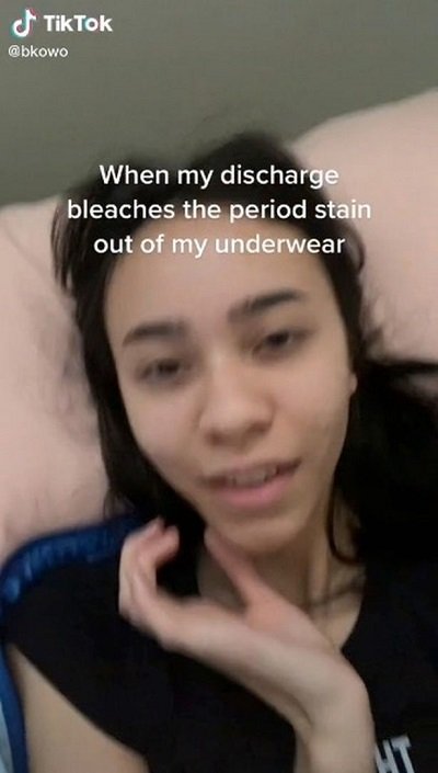 In this weird news post, Kay, a Tiktok influencer, claims her vaginal discharge is ‘acidic’ enough to dye her pants and hair