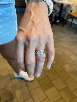 Periesa, of Beckenham, southeast London, in recounting her ordeal, said that he had woken up one morning and I just couldn’t pull the ring off after her fiancé, Willis Oromé, 28, a knowledge management specialist, popped the question during a romantic proposal and she tried to remove it but couldn’t. Her fingers started swelling and turning purple