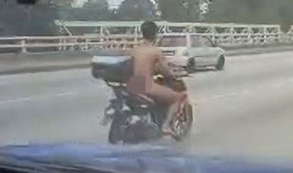 A man has been filmed riding naked on a motorbike on a motorway in Malaysia as he reportedly fled after slaughtering his wife and baby with a meat chopper, in another weird news of today. A video has emerged on social media showing the man appearing to flee the scene of the crime.