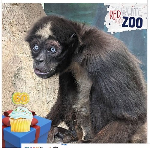 According to the news headline on upi.com: ‘’Idaho zoo’s 60-year-old spider monkey might be world’s oldest’’, Zoo Boise in Idaho threw a birthday party for a spider monkey, Elvis, and an Aldabra tortoise named Mr. Mac, who turned 100.